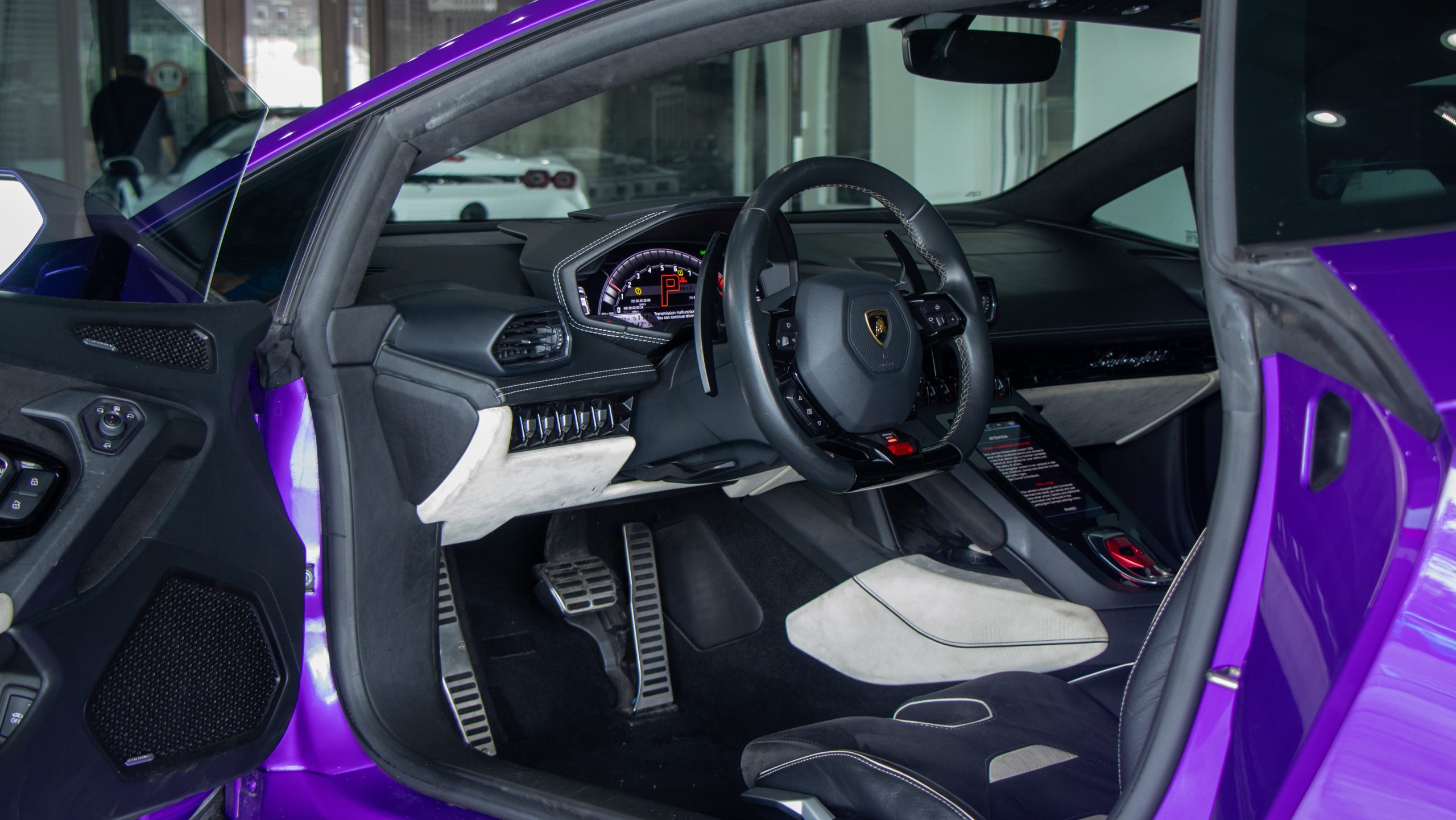 Inside, the Huracán EVO blends motorsport aggression with luxury refinement. Alcantara and leather upholstery, carbon fiber accents, and a driver-focused cockpit make every moment behind the wheel unforgettable.